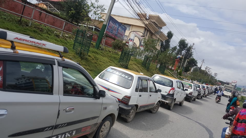 दमक, ७ साउन । लामो समयदेखि काठमाडौंमा गुडने टयाक्सीको भाडा समायोजन नभएको भन्दै यातायात व्यवसायीले सवारी साधनसहित विरोध प्रदर्शन शुरु गरेका छन् । करिब १२ हजार ३ सय ५० वटा टयाक्सीले भाडा बढाउनुपर्ने माग गदै काठमाडौंको कोटेश्वर, ग्वार्खो लगनखेल, जावलाखेल लगायत चक्रपथ क्षेत्रमा जुलुस निकालेका छन् । उनीहरुले गरेको प्रदर्शनका कारण विहानैदेखि काठमाडौंको सवारी आवागमन अस्तव्यस्त बनेको छ ।