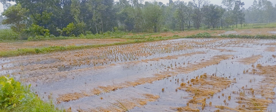 यतिबेला किसानले धान काटर पाँजा लगाएका थिए । कतिपय किसानले पाँजा लगाएको धान उठाउन तमतयार थिए । काट्न आँटेको धान समेत हावा सहित परेको पानीले धानकोे बोट भाँचेर सोत्तर बनाएको छ ।