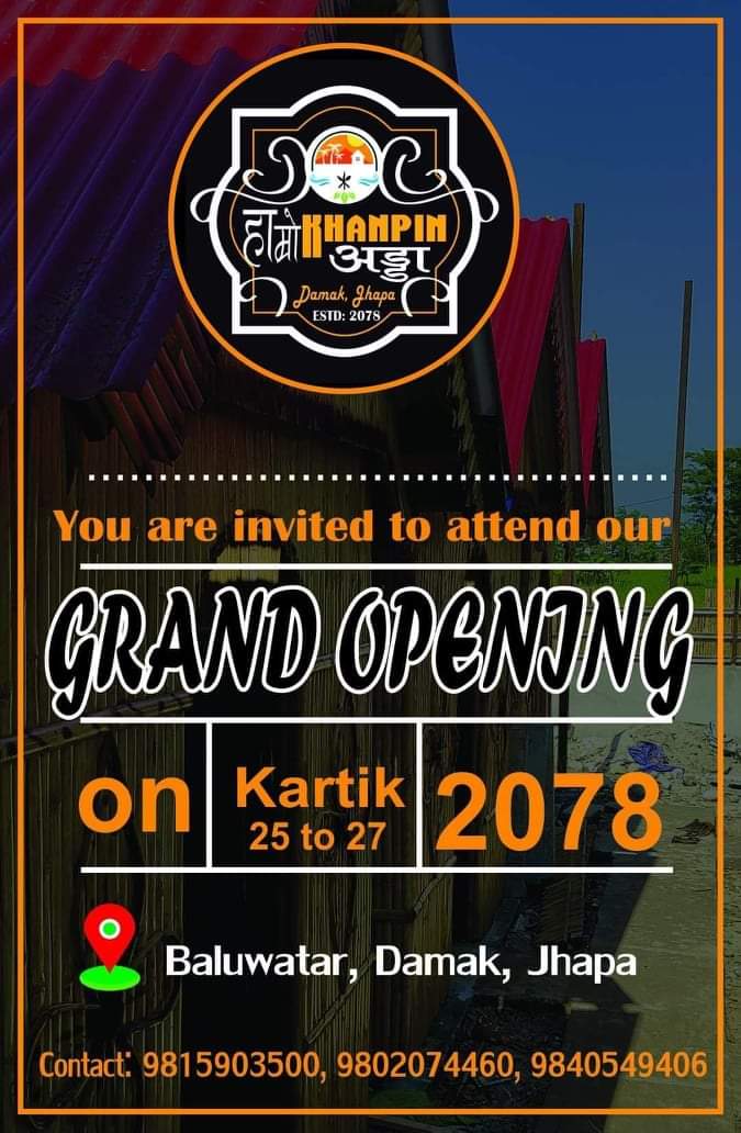 झापाको दमकमा १० जना युवा हरुको समूह मिलि दमकको बालुवाटारमा हाम्रो खानपिन अड्डा सञ्चालनमा ल्याएका छन्। अड्डामा विशेष गरी चिकेन, बटाई, भेजका फरक फरक परिकारहरु पाइने साथै जन्मदिन, बिभिन्न संस्थाका पार्टी, मिटिङ्ग गर्नका लागि सुविधा सम्पन्न ठाउ सहित रहेको सञ्चालकहरूले बताए ।