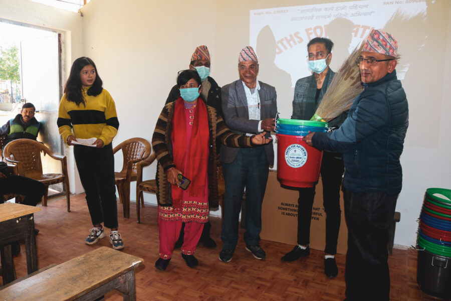 “युथ फर नेशन द्वारा सरस्वती आधारभूत विद्यालयमा डष्ट्बिन हस्तान्तरण”