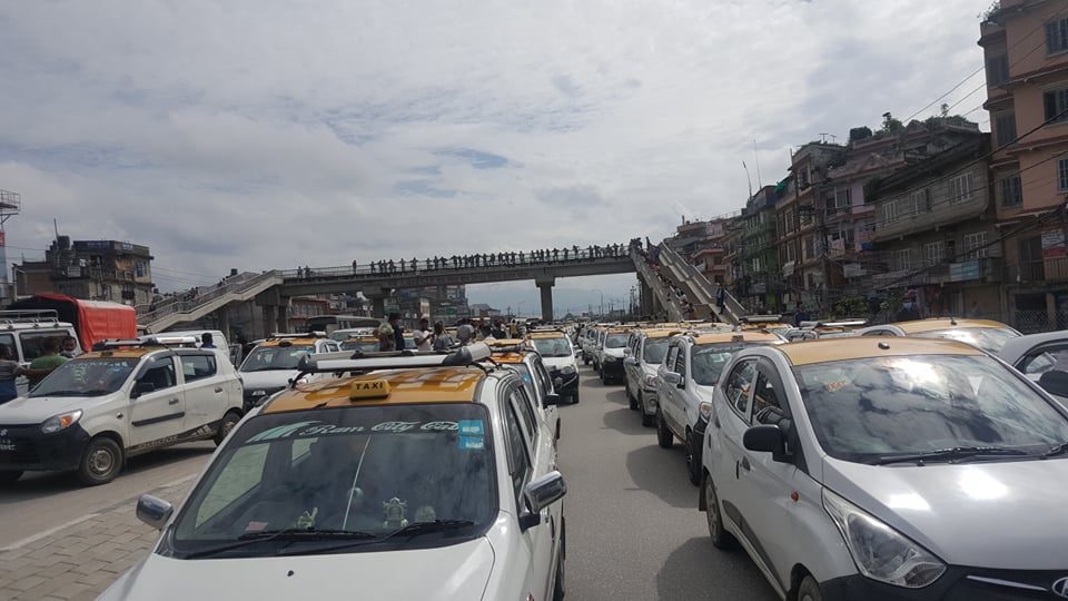 भाडा समायोजन नभएको भन्दै व्यवसायीले सडक अबरुद्ध पारे, १२ हजार ३ सय ५० टयाक्सी आन्दोलनमा (तस्विरहरु)