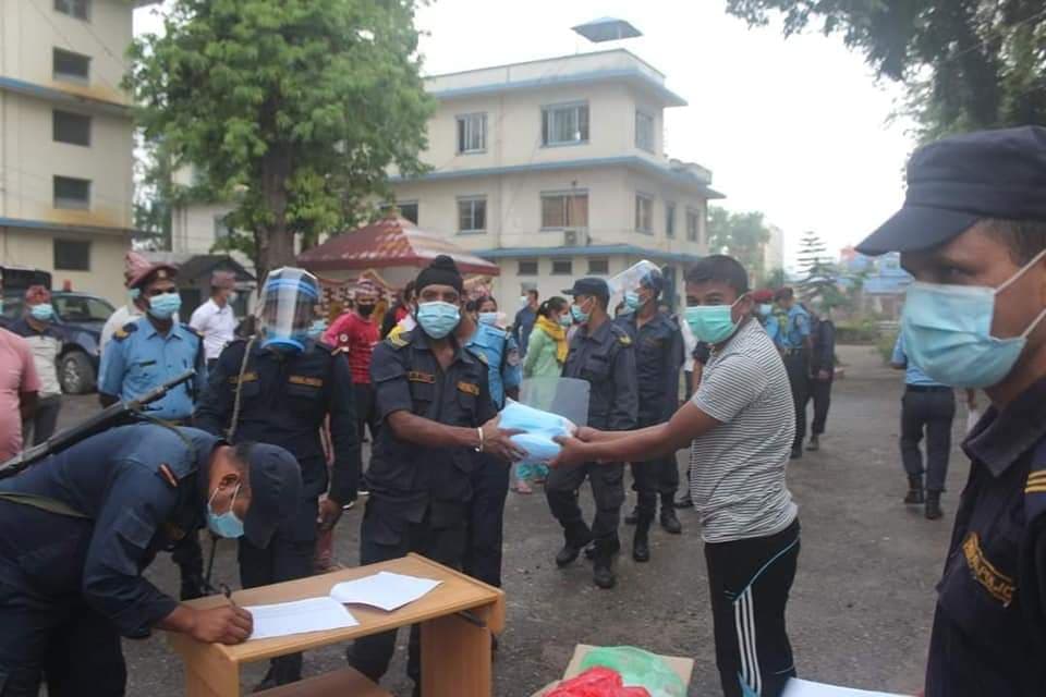 प्रहरी कर्मचारीहरुलाई सुरक्षित राख्न जिल्ला प्रहरी कार्यालय बर्दियामा मास्क वितरण