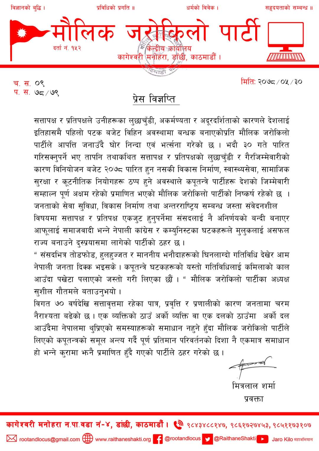 बजेट विहिन अवस्था ल्याएकोमा जरोकिलोले गर्‍योे घोर भर्त्सना