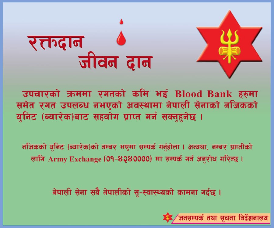 इमर्जेन्सी रगत चाहिएमा नेपाली सेनालाई सम्झनु होस्